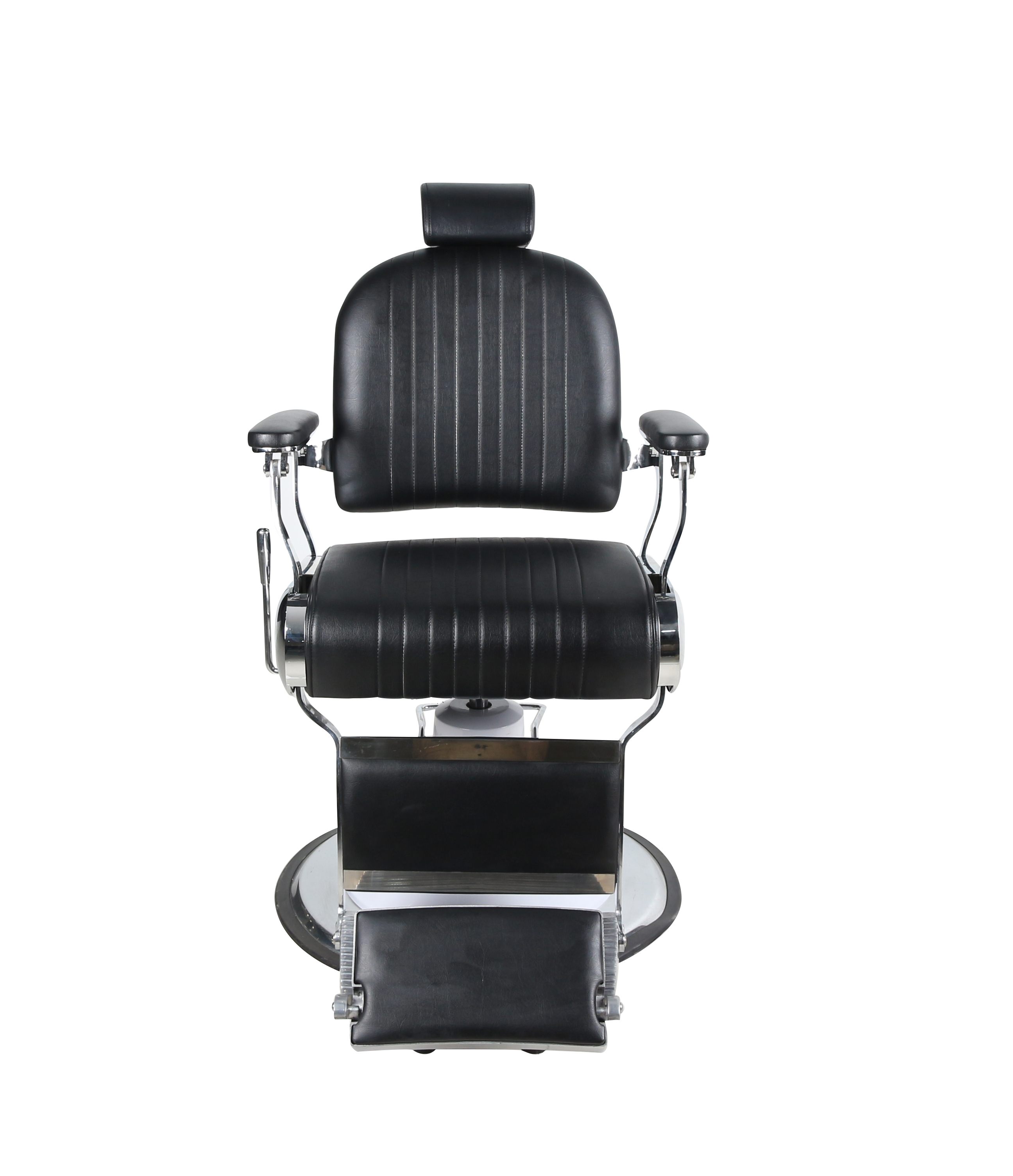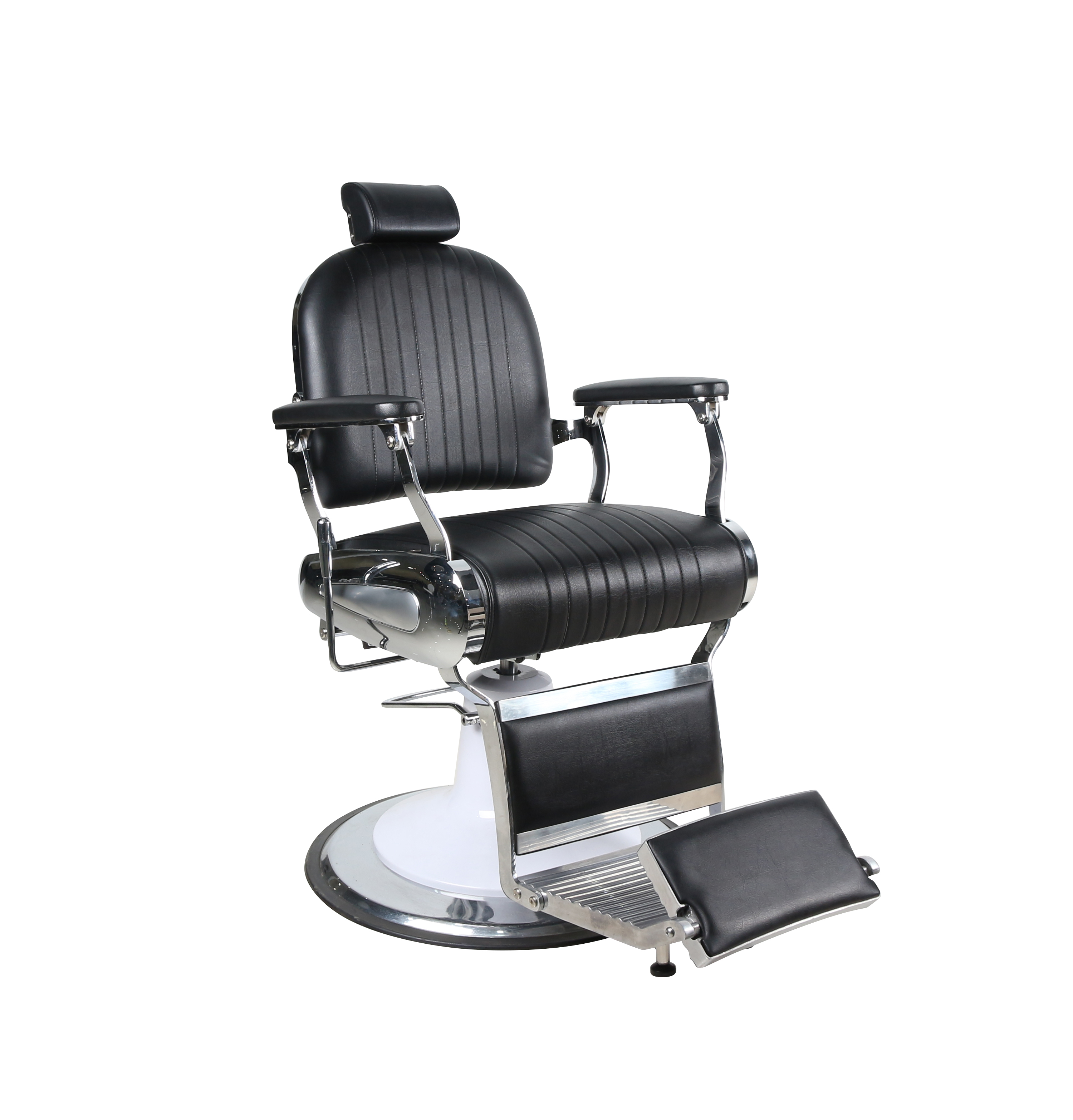 Barber stolica Leon osmišljena je za salone koji cijene čiste linije, funkcionalnost i bezvremenski izgled. Njezin minimalistički dizajn bez dekorativnih gumba čini je izuzetno prilagodljivom – jednako dobro se uklapa u moderne, industrijske i klasične brijačnice. Crna boja presvlake dodatno naglašava profesionalan i uredan dojam prostora.