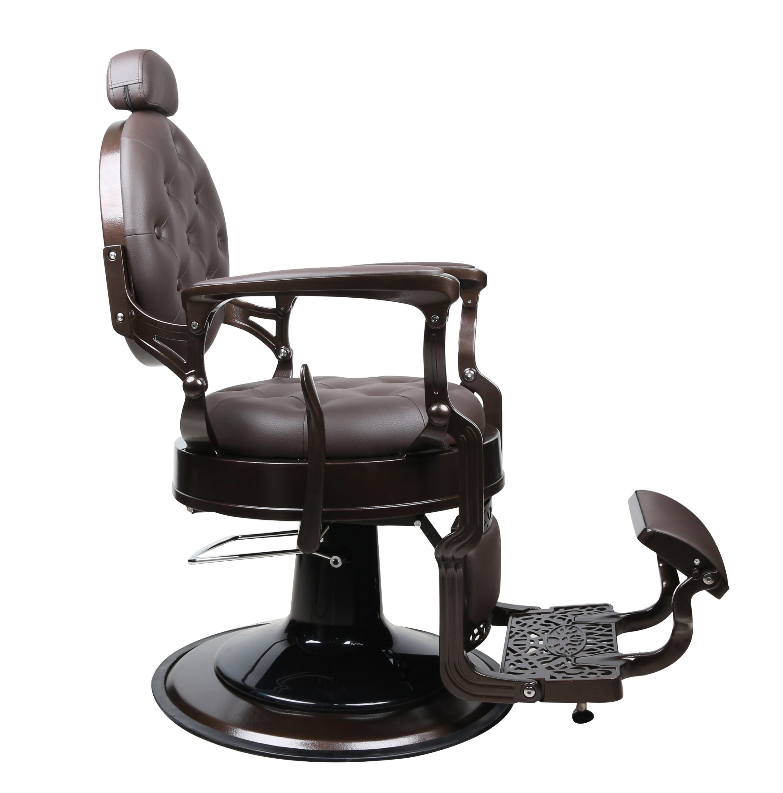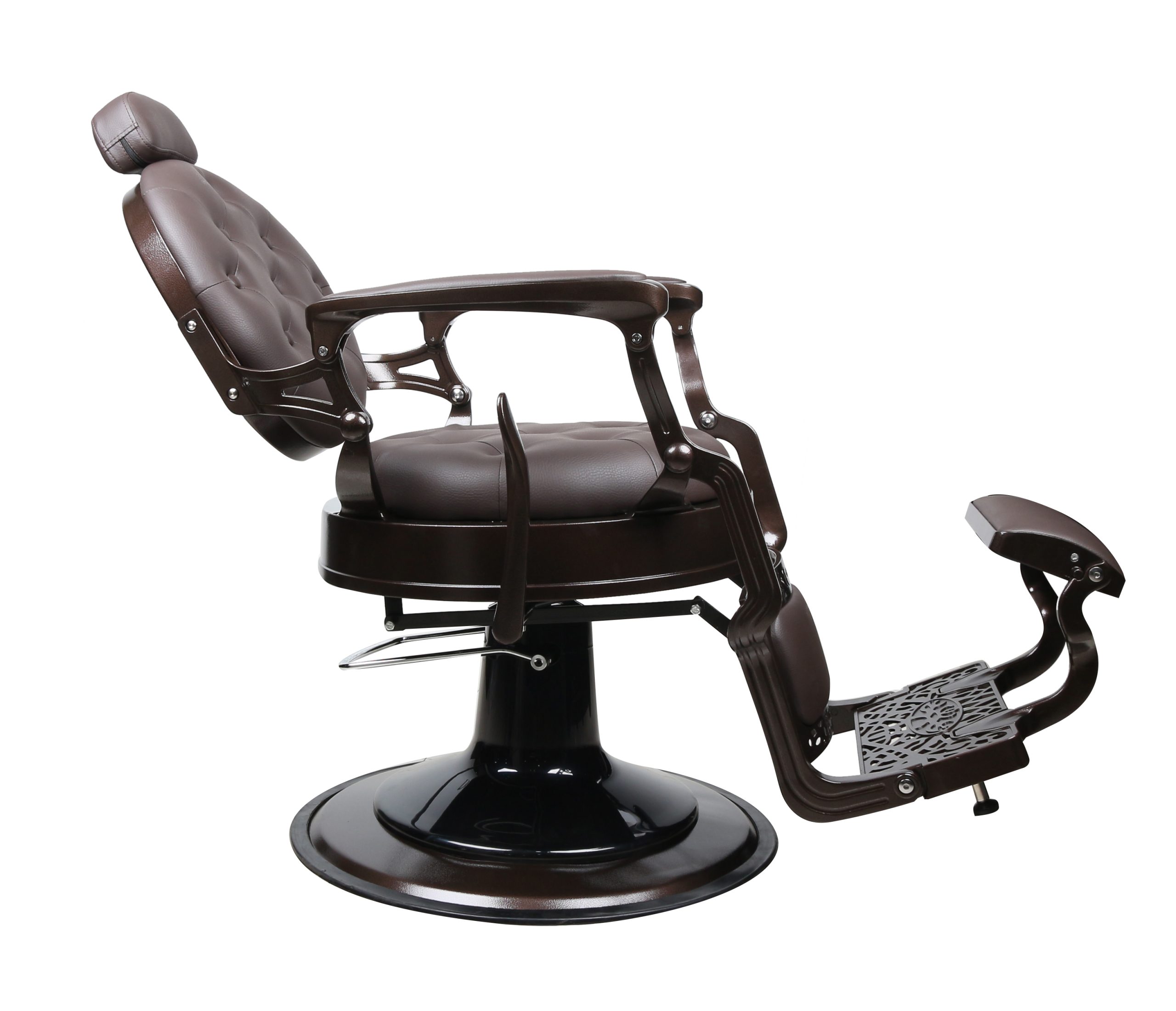 Presvlaka od visokokvalitetne smeđe kože donosi toplinu, eleganciju i autentičan vintage dojam. Osim vizualne privlačnosti, koža pruža iznimnu udobnost klijentima tijekom duljih tretmana poput klasičnog brijanja, oblikovanja brade ili preciznih fade tehnika. Površina je jednostavna za održavanje i zadržava reprezentativan izgled kroz vrijeme.