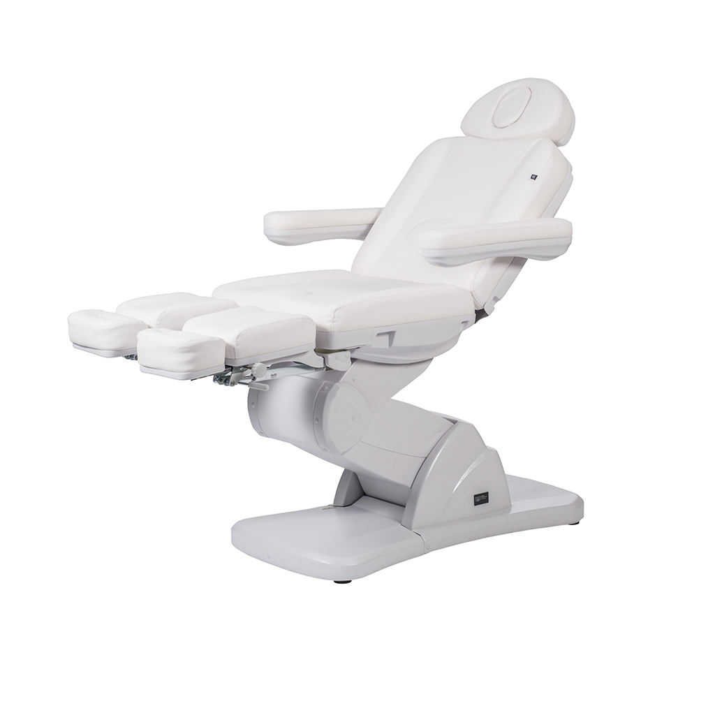 Pedikerska stolica HADRON – bijela električna stolica s rotacijom, 3 motora i integriranim upravljanjem