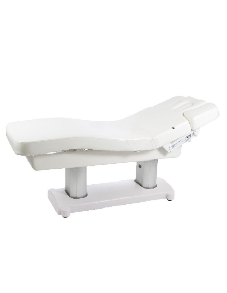 Jednodijelni troslojni madrac pruža iznimnu udobnost čak i tijekom dugotrajnih tretmana. Presvlaka od bijele PU kože je mekana, estetski profinjena i otporna na ulja, vlagu i sredstva za dezinfekciju, što olakšava održavanje visoke razine higijene.