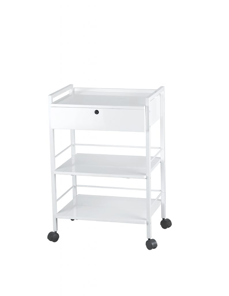 Kolica su opremljena jednom praktičnom ladicom za sitni pribor te s tri otvorene police koje omogućuju brzo i jednostavno odlaganje stolnih uređaja, bočica, preparata i instrumenata.