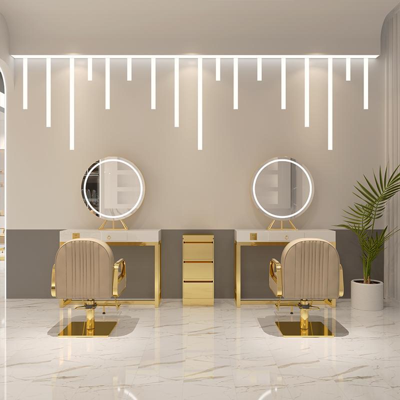 Zahvaljujući svom dizajnu, dimenzijama i LED rasvjeti, Barcelona Gold posebno je prikladna za ženska frizerska radna mjesta. Vizualno podiže prostor, a istovremeno osigurava visoku razinu funkcionalnosti i profesionalnosti.